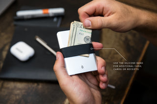 The Lowe may appear simple, but there’s magic inside. The Lowe card case holds one card just as securely as it holds six; no tools or adjustments required, ever. That’s the magic of Pinch-Tech working for you. Your cards are held securely, but they’re still easy to access via the finger slot, and the silicone band gives you the flexibility to strap your favorite card, some cash or a receipt to the outside.