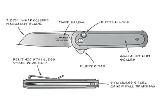 The Wells is 100% made in the USA, joining The Kline and The Anzick in our ever-expanding line of domestically made knives and tools. We know it’s important to you and it’s important to us too. The Wells features a button-lock for security and ease of use. The flipper tab design means that The Wells is easily and quickly deployed with just a flick of the finger; it’s a fast and easy one-handed deployment, every time. The fidget factor with a flipper is also off the charts. You’ll never be able to put this one down. The formed wire pocket clip makes for easy and secure in-pocket carry. The caged, stainless steel bearings enable a buttery smooth deployment every time. The scales are aerospace-grade 6061 aluminum.